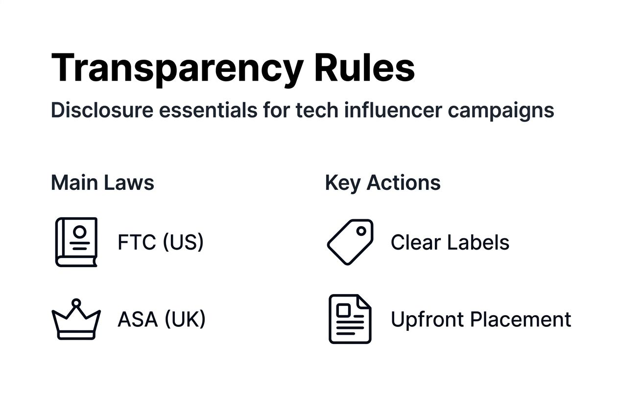 What are the key regulations influencing transparency in tech influencer campaigns?